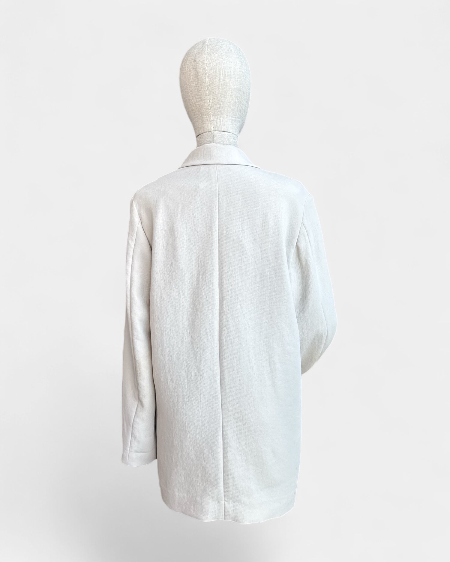 Blazer oversize Wilfred en blanc cassé, coupe droite et élégante. Fermeture croisée avec boutons noirs contrastants, poches à rabat et col tailleur classique. Un basique chic et intemporel, parfait pour la mi-saison.